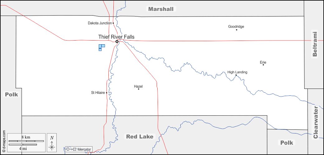d-maps > Stati Uniti d'America (USA) > Minnesota > Contea di Pennington > frontiere, idrografia, principali città, strade, nomi