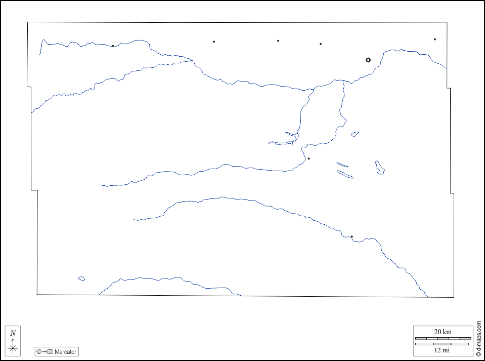 d-maps > Stati Uniti d'America (USA) > Nebraska > Contea di Cherry > contorni, idrografia, principali città, bianco