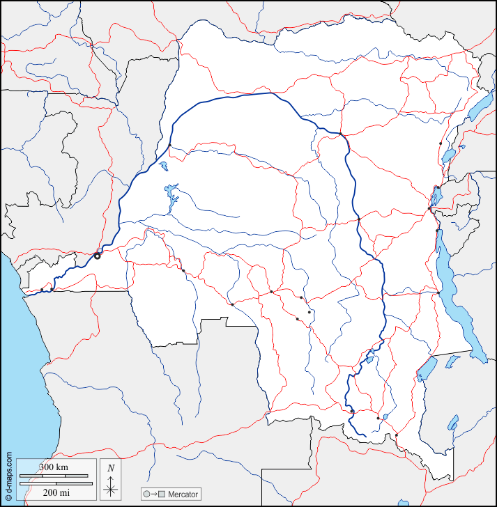 d-maps > Africa > Repubblica democratica del Congo > RD del Congo > frontiere, idrografia, principali città, strade