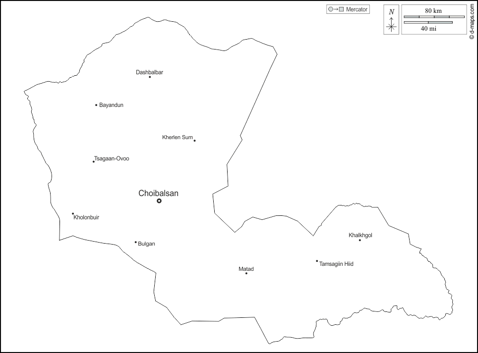 d-maps > Asia > Mongolia > Dornod > contorni, principali città, nomi, bianco