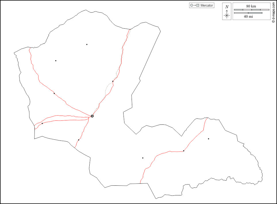 d-maps > Asia > Mongolia > Dornod > contorni, principali città, strade, bianco