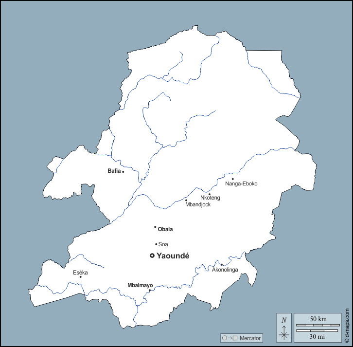 d-maps > Africa > Camerun > Regione del Centro > contorni, idrografia, principali città, nomi