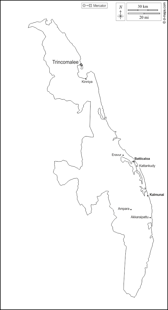 d-maps > Asia > Sri Lanka > Provincia Orientale > contorni, principali città, nomi, bianco