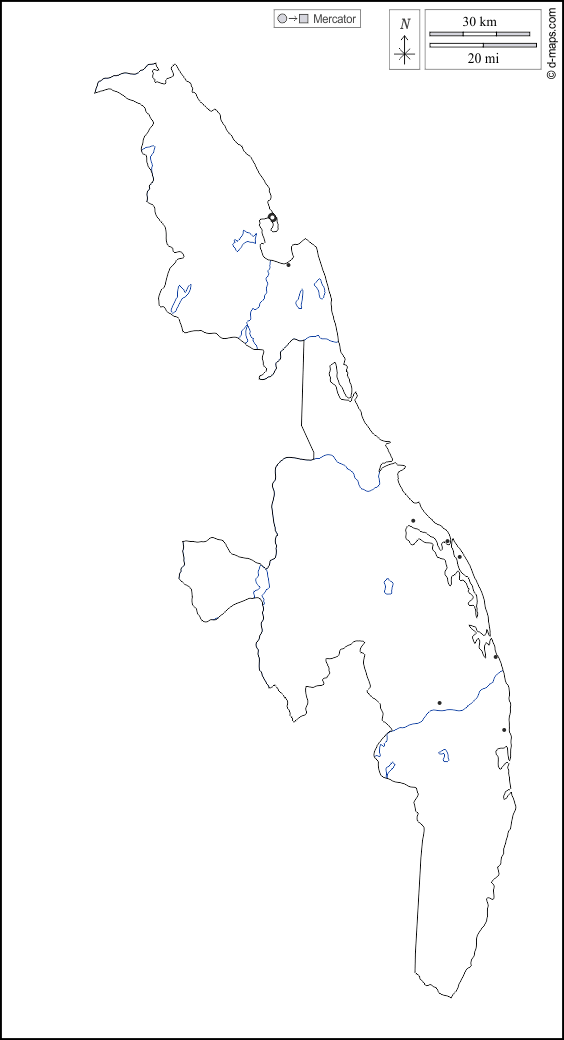 d-maps > Asia > Sri Lanka > Provincia Orientale > contorni, idrografia, principali città, bianco