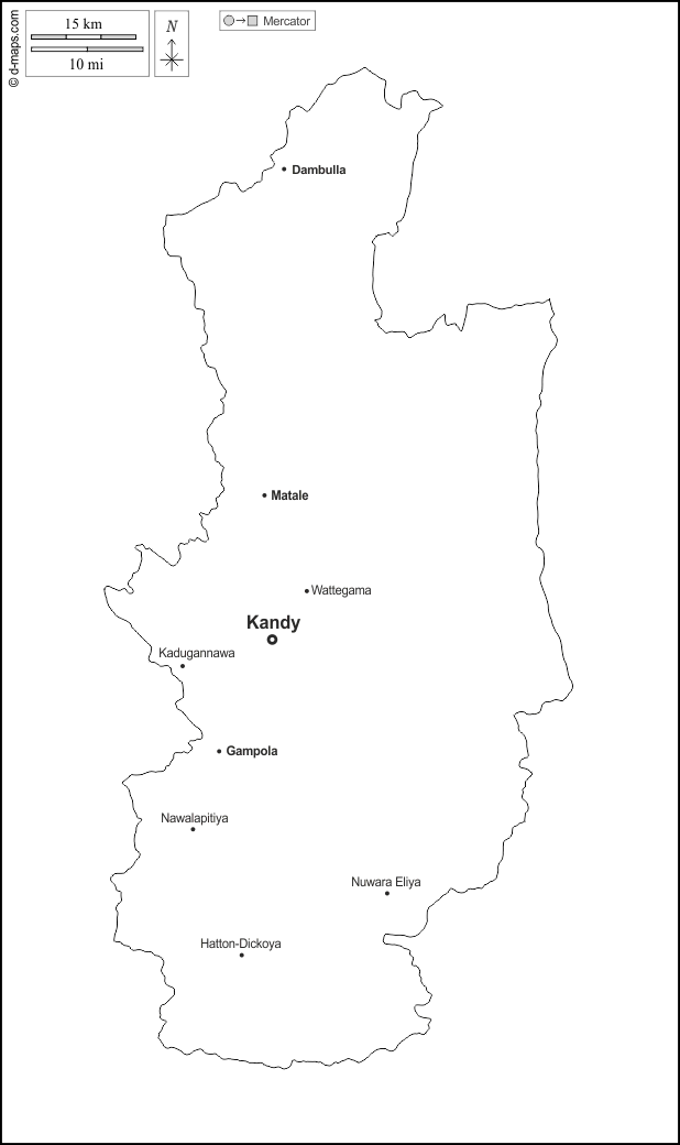 d-maps > Asia > Sri Lanka > Provincia Centrale > contorni, principali città, nomi, bianco