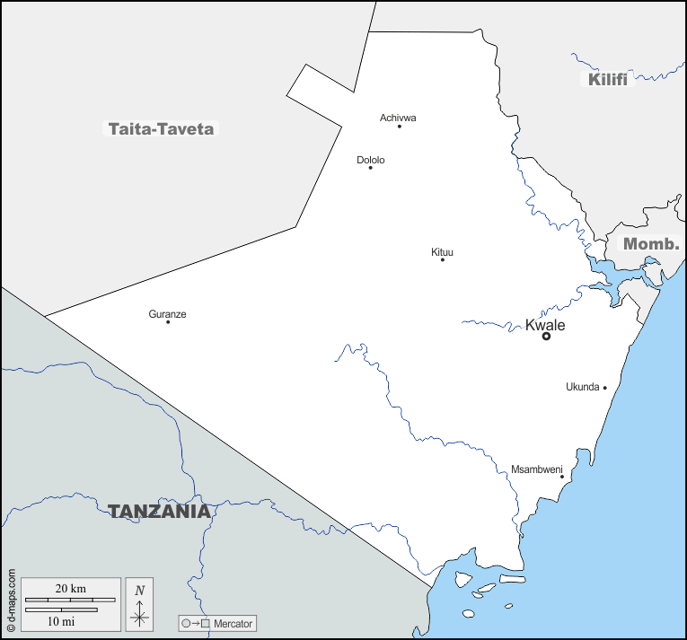 d-maps > Africa > Kenya > Contea di Kwale > frontiere, idrografia, principali città, nomi