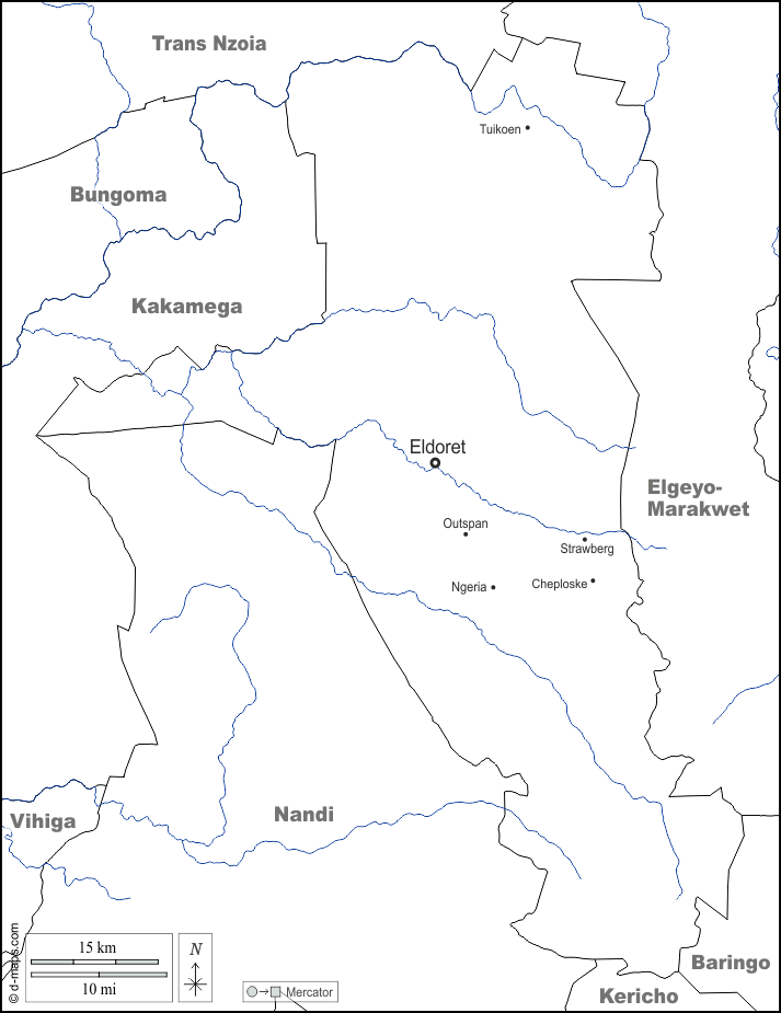 d-maps > Africa > Kenya > Contea di Uasin Gishu > frontiere, idrografia, principali città, nomi, bianco