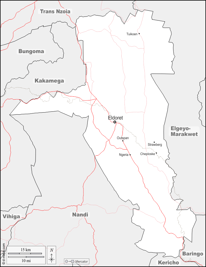 d-maps > Africa > Kenya > Contea di Uasin Gishu > frontiere, principali città, strade, nomi