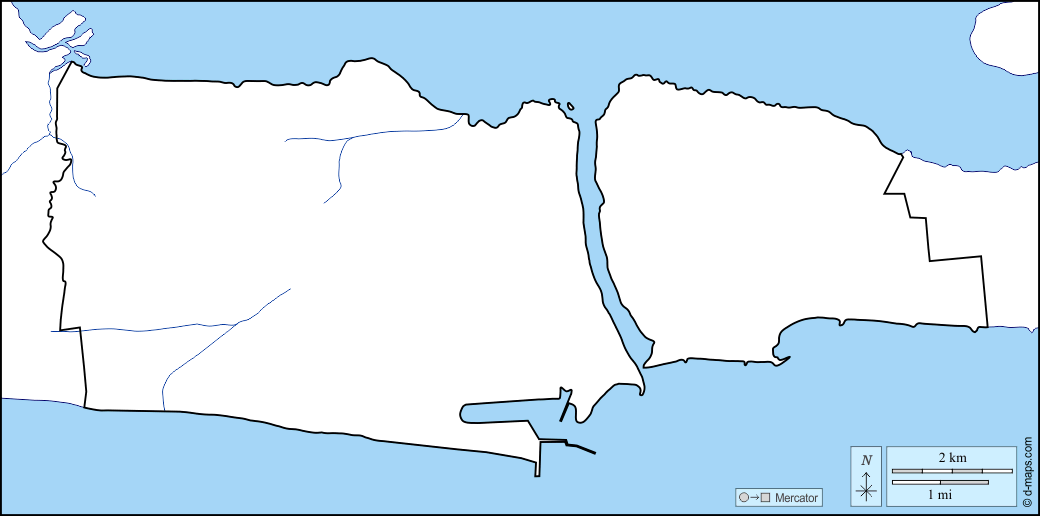 d-maps > Africa > Benin > Dipartimento del Litorale > litorali, limiti, idrografia