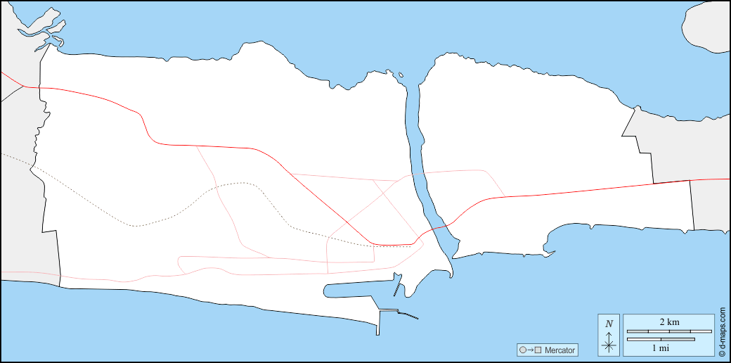 d-maps > Africa > Benin > Dipartimento del Litorale > frontiere, strade