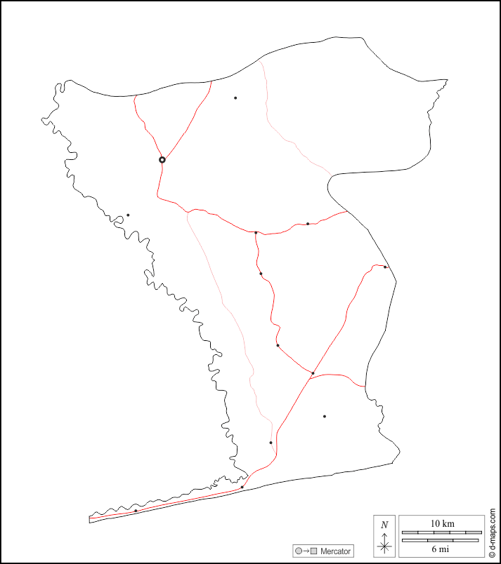 d-maps > Africa > Benin > Dipartimento di Mono > contorni, principali città, strade, bianco