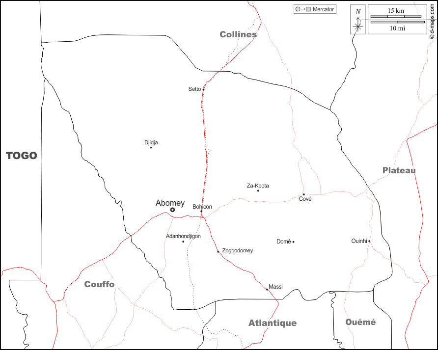 d-maps > Africa > Benin > Dipartimento di Zou > frontiere, principali città, strade, nomi, bianco
