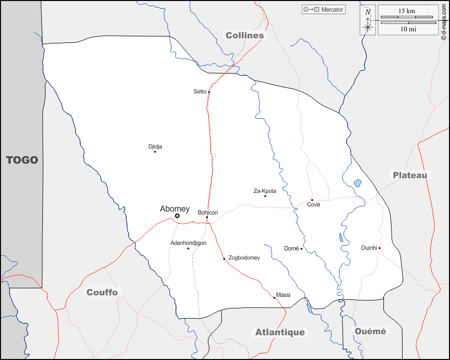 d-maps > Africa > Benin > Dipartimento di Zou > frontiere, idrografia, principali città, strade, nomi