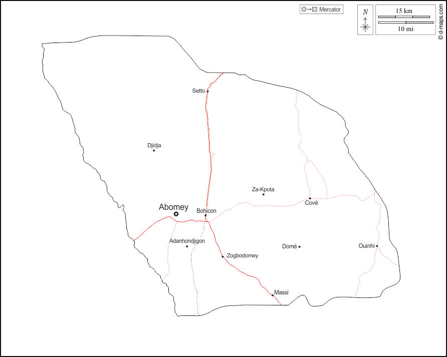 d-maps > Africa > Benin > Dipartimento di Zou > contorni, principali città, strade, nomi, bianco
