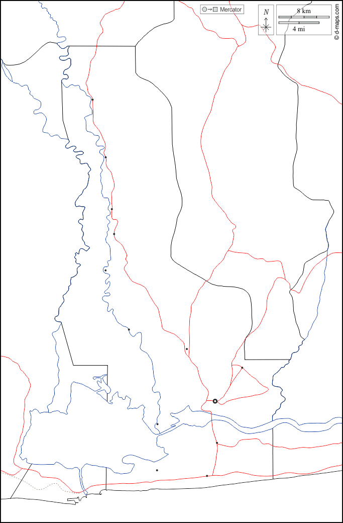 d-maps > Africa > Benin > Dipartimento di Ouémé > frontiere, idrografia, principali città, strade, bianco