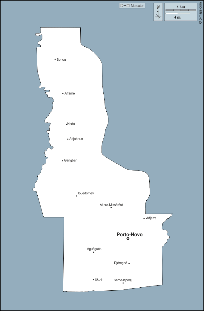 d-maps > Africa > Benin > Dipartimento di Ouémé > contorni, principali città, nomi