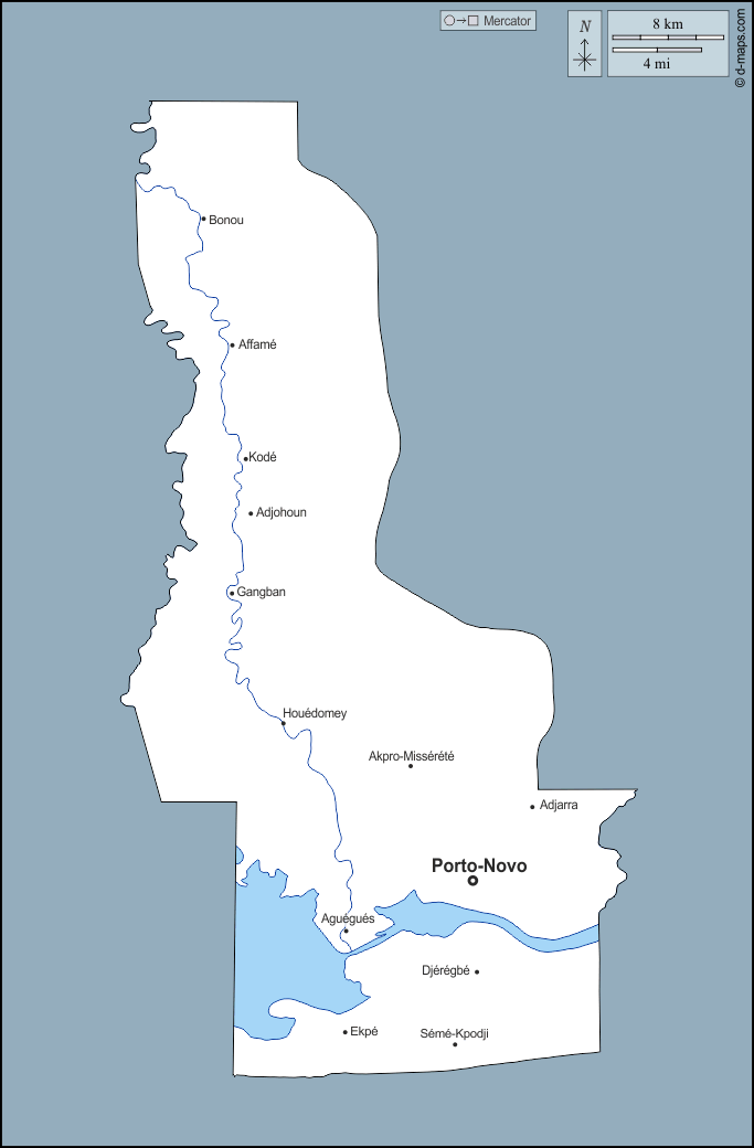 d-maps > Africa > Benin > Dipartimento di Ouémé > contorni, idrografia, principali città, nomi