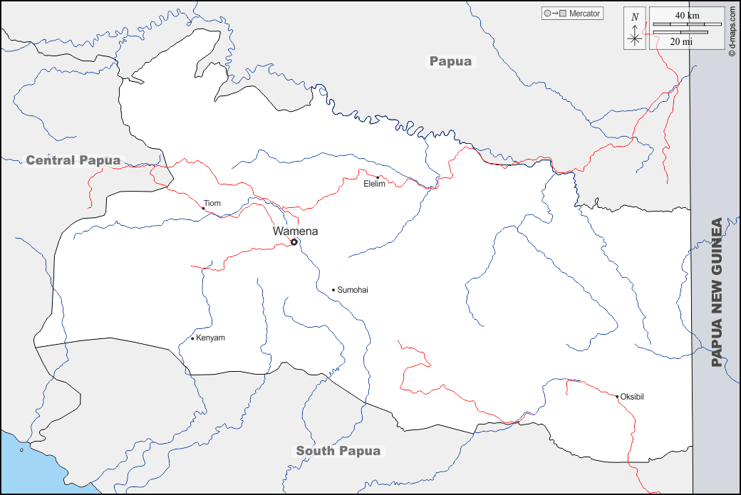 d-maps > Asia > Indonesia > Papua Pegunungan > frontiere, idrografia, principali città, strade, nomi