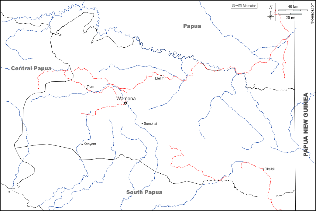 d-maps > Asia > Indonesia > Papua Pegunungan > frontiere, idrografia, principali città, strade, nomi, bianco