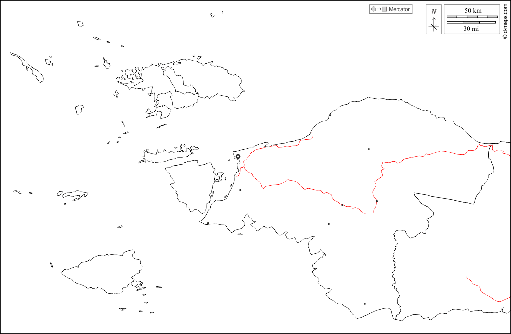 d-maps > Asia > Indonesia > Papua sud-occidentale > frontiere, principali città, strade, bianco