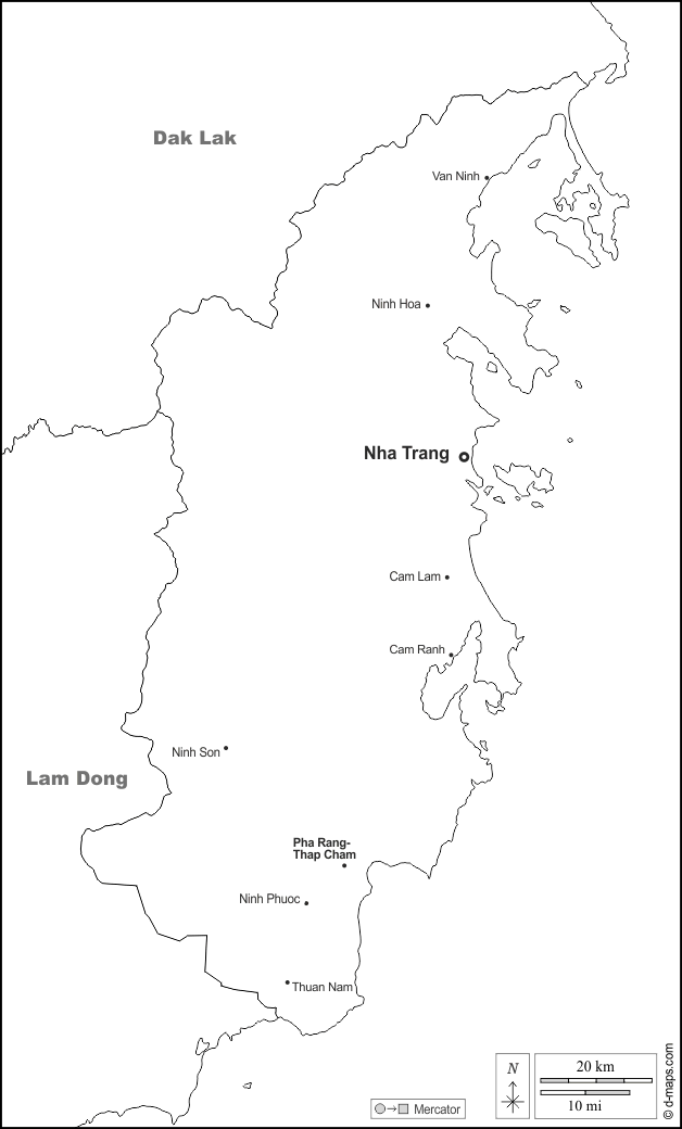 d-maps > Asia > Vietnam > Provincia di Khanh Hoa > frontiere, principali città, nomi, bianco
