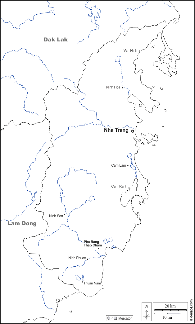 d-maps > Asia > Vietnam > Provincia di Khanh Hoa > frontiere, idrografia, principali città, nomi, bianco