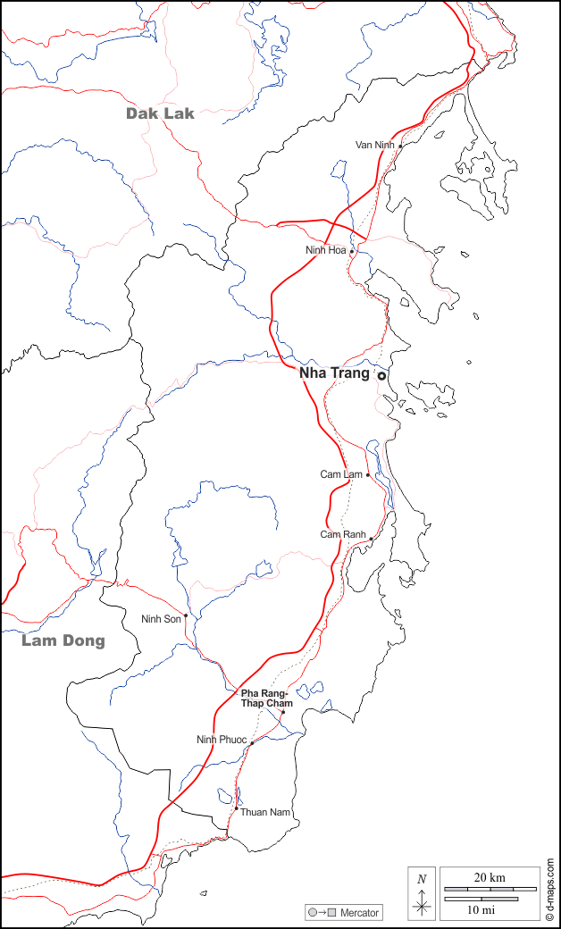 d-maps > Asia > Vietnam > Provincia di Khanh Hoa > frontiere, idrografia, principali città, strade, nomi, bianco