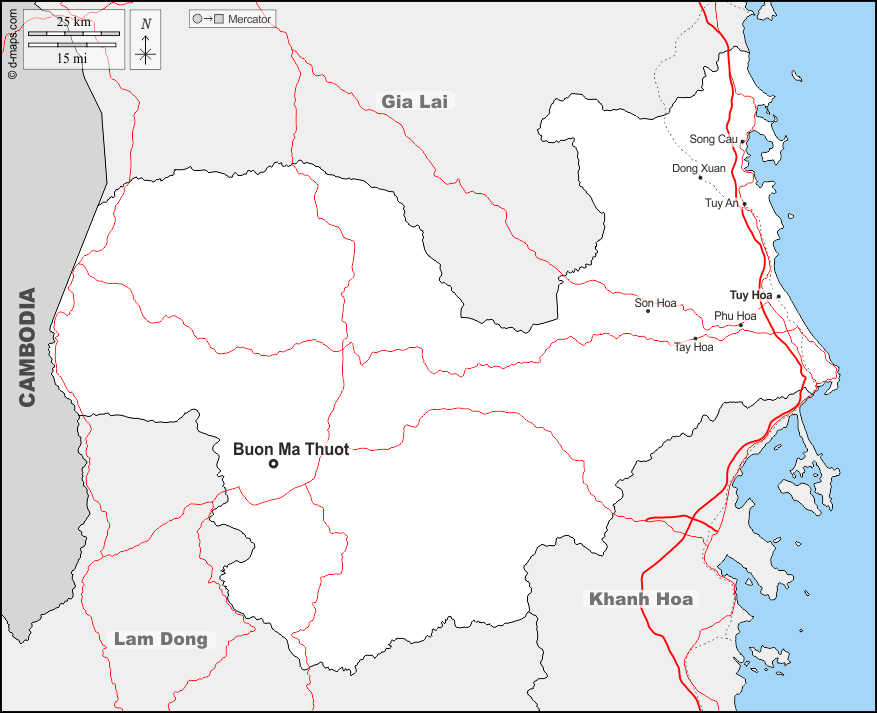d-maps > Asia > Vietnam > Provincia di Dak Lakx > frontiere, principali città, strade, nomi