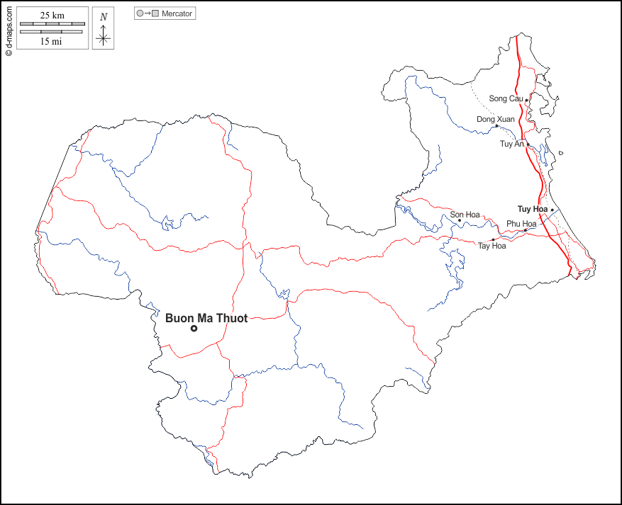 d-maps > Asia > Vietnam > Provincia di Dak Lakx > contorni, idrografia, principali città, strade, nomi, bianco