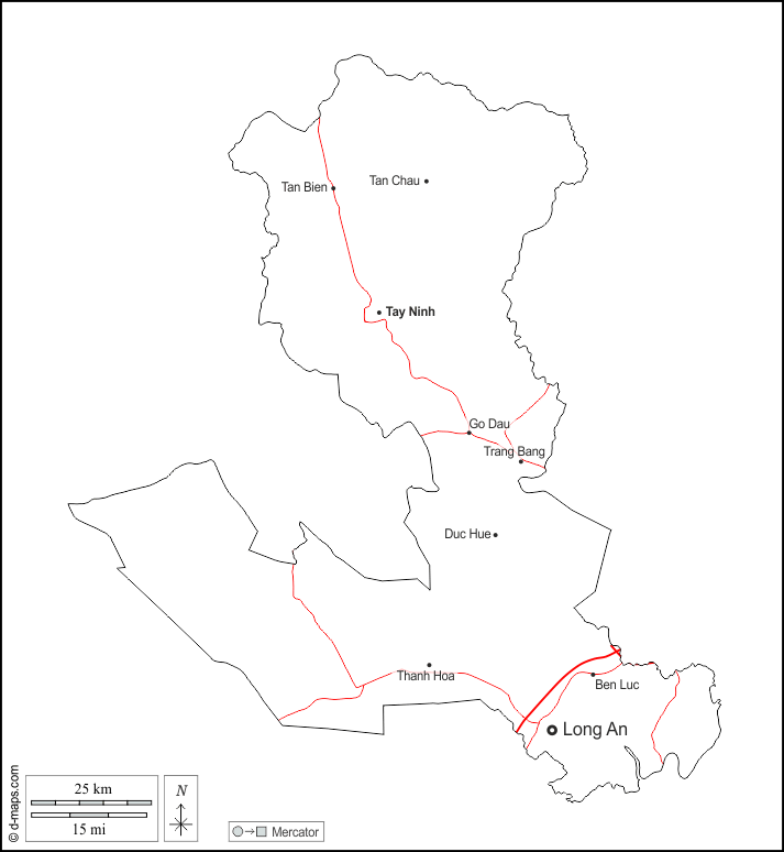 d-maps > Asia > Vietnam > Provincia di Tây Ninh > contorni, principali città, strade, nomi, bianco