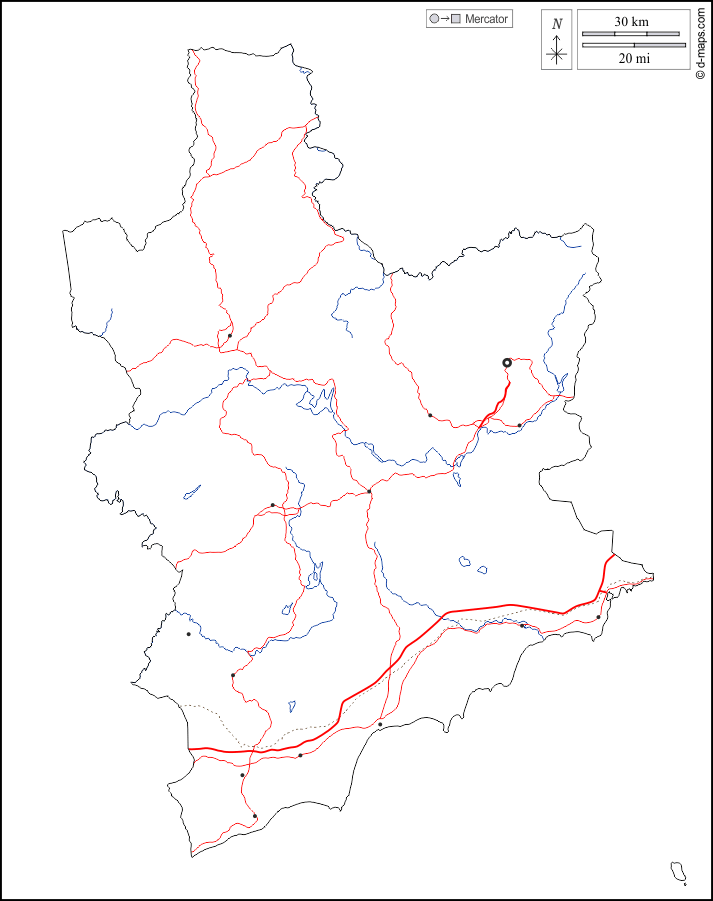 d-maps > Asia > Vietnam > Provincia di Lam Dong > contorni, idrografia, principali città, strade, bianco