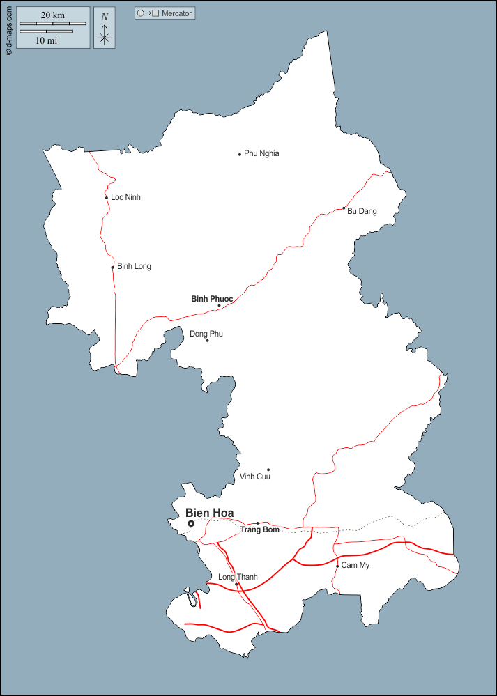 d-maps > Asia > Vietnam > Provincia di Dong Nai > contorni, principali città, strade, nomi