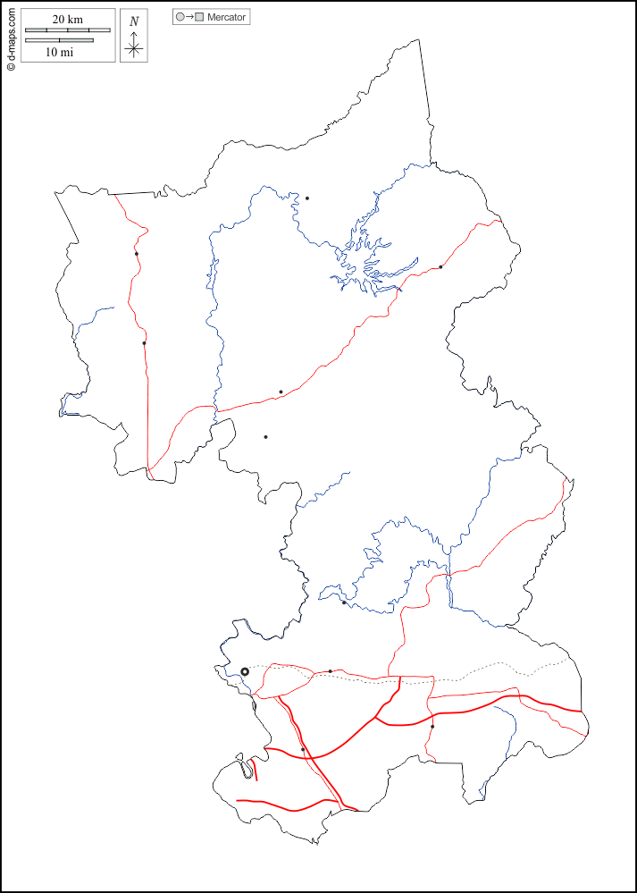 d-maps > Asia > Vietnam > Provincia di Dong Nai > contorni, idrografia, principali città, strade, bianco