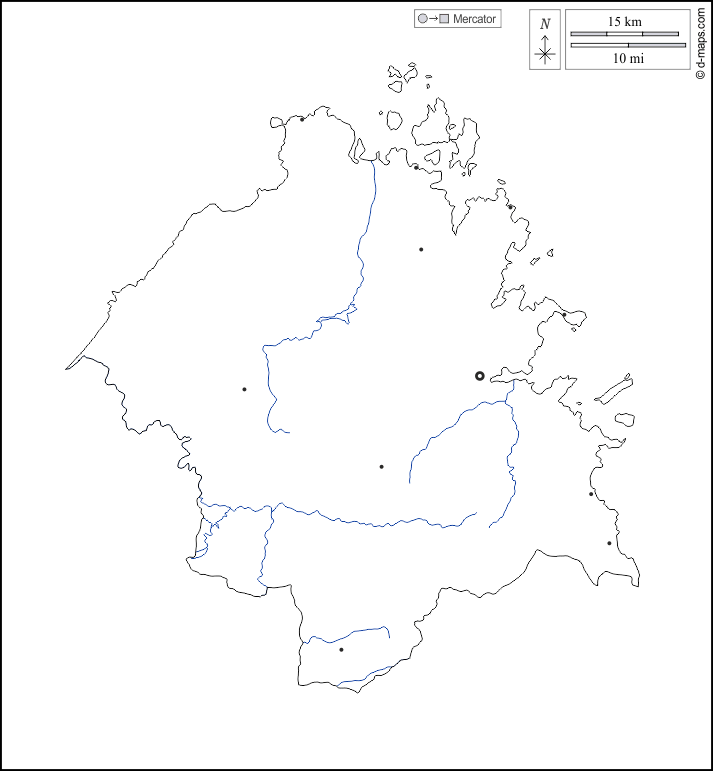 d-maps > Europa > Italia > Provincia della Gallura Nord-Est Sardegna > contorni, idrografia, principali città, bianco