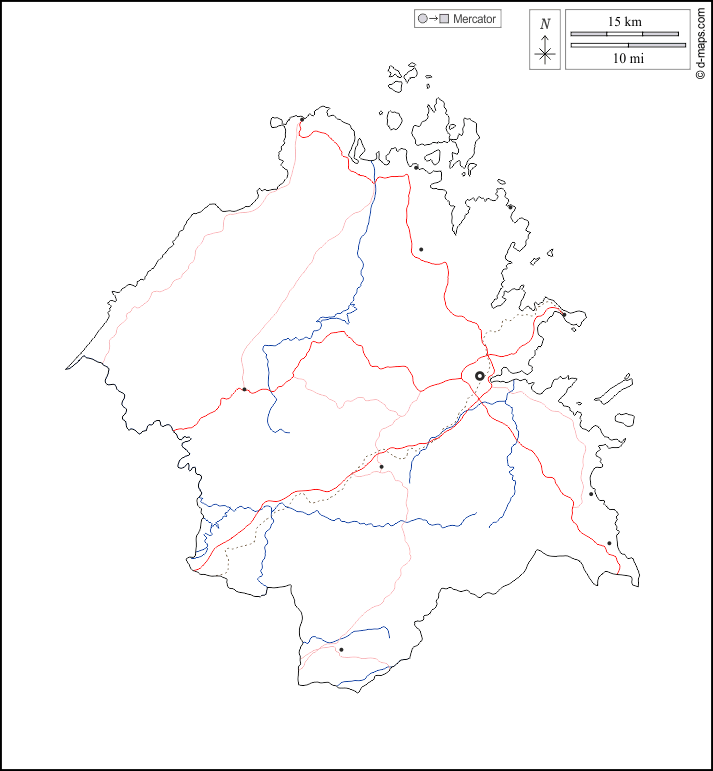 d-maps > Europa > Italia > Provincia della Gallura Nord-Est Sardegna > contorni, idrografia, principali città, strade, bianco