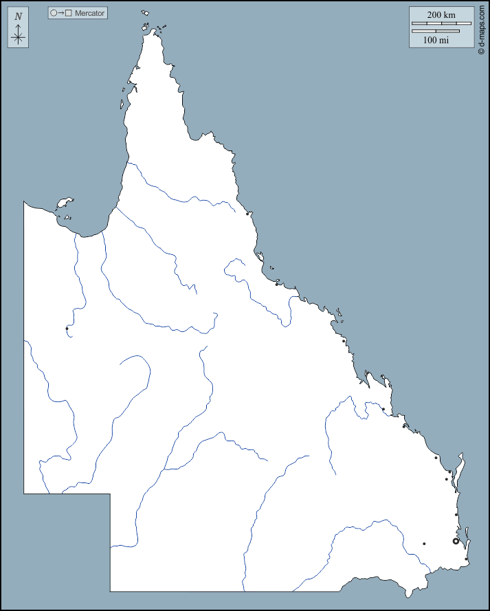 d-maps > Oceania > Queensland > contorni, idrografia, principali città