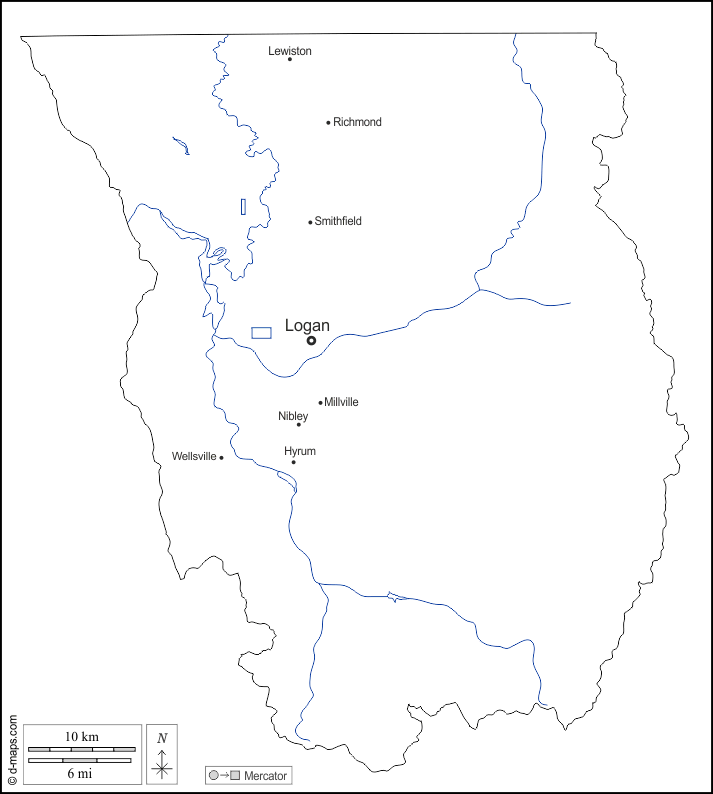 Stati Uniti d'America (USA) > Utah > Contea di Cache > contorni, idrografia, principali città, nomi, bianco