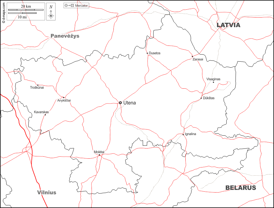 Anykšciai - Dukštas - Dusetos - Ignalina - Kavarskas - Moletai - Troškunai - Utena - Visaginas - Zarasai