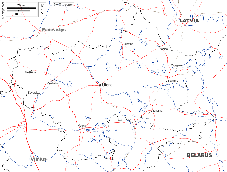Anykšciai - Dukštas - Dusetos - Ignalina - Kavarskas - Moletai - Troškunai - Utena - Visaginas - Zarasai