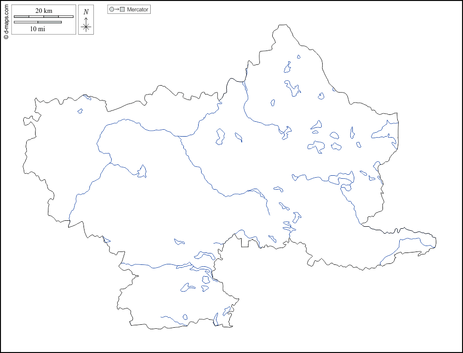 d-maps > フランス > リトアニア > ウテナ郡 > 輪郭, 川と湖, 白い