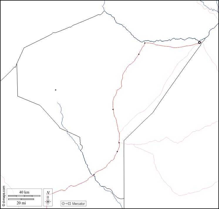 境界, 川と湖, 主要都市, 道路, 白い