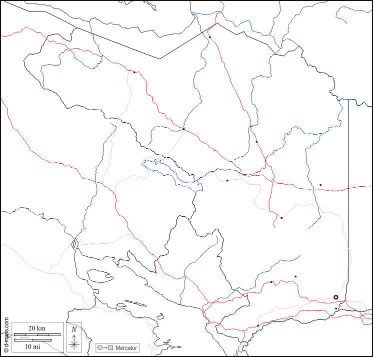 d-maps > アメリカ州 > コスタリカ > アラフエラ州 > 境界, 川と湖, 主要都市, 道路, 白い