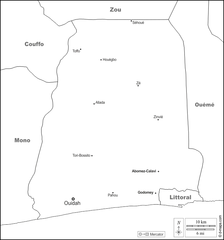 Abomez-Calavi - Allada - Godomey - Houégbo - Ouidah - Pahou - Séhoué - Toffo - Tori-Bossito - Zinvié - Zé