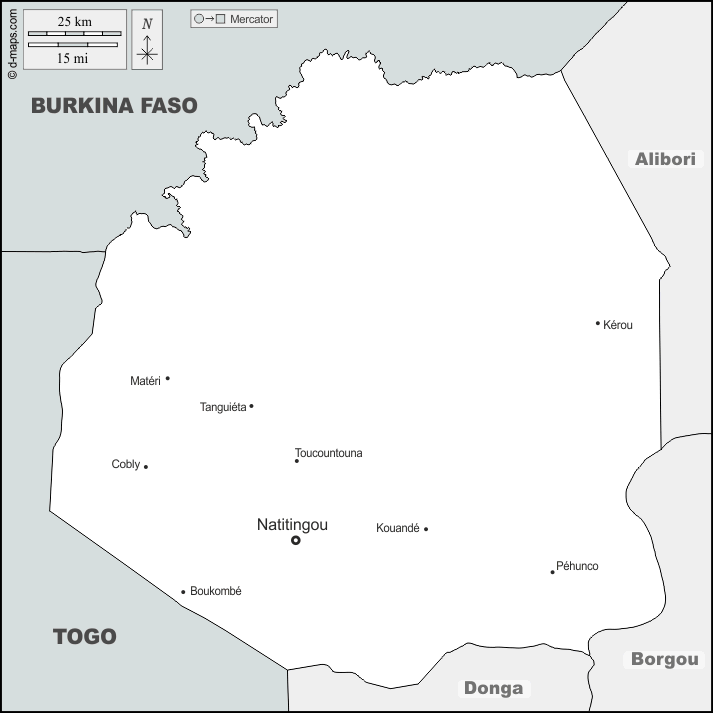 d-maps > アフリカ > ベナン > アタコラ県 > 境界, 主要都市, 名前