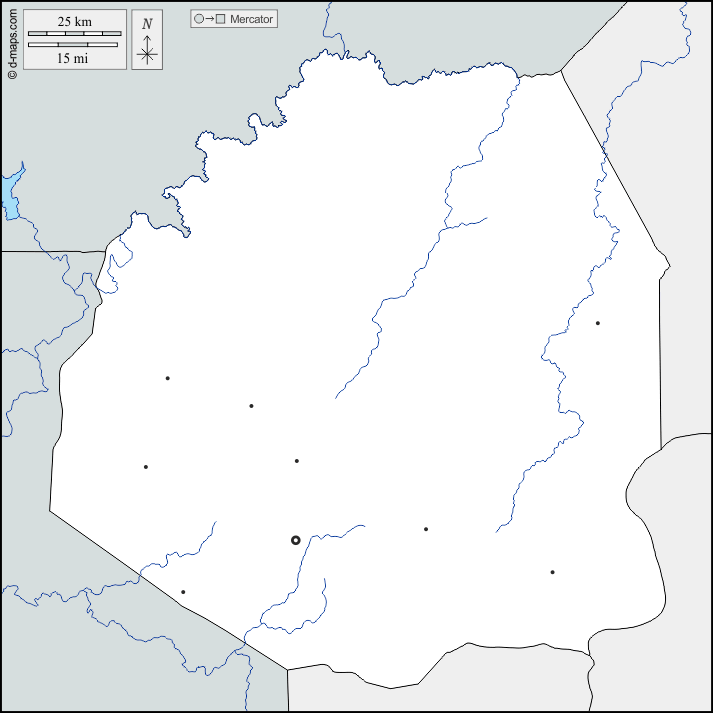 d-maps > アフリカ > ベナン > アタコラ県 > 境界, 川と湖, 主要都市