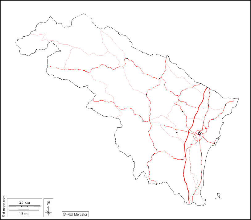 d-maps > アジア > ベトナム > タインホア省 > 輪郭, 主要都市, 道路, 白い