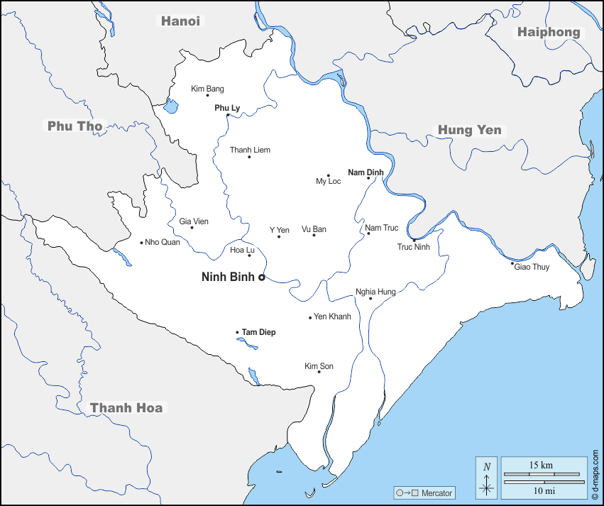 d-maps > アジア > ベトナム > ニンビン省 > 境界, 川と湖, 主要都市, 名前