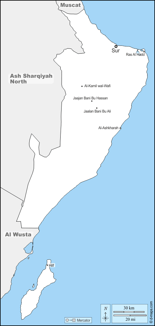 d-maps > オマーン > シャルキーヤ南部県 > 境界, 主要都市, 名前