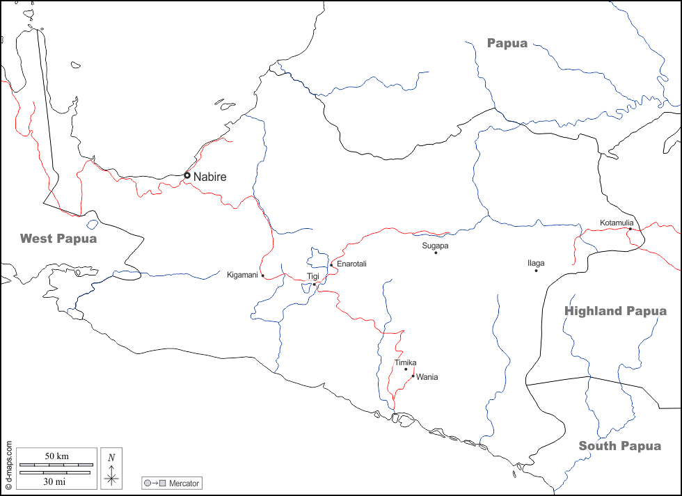 Enarotali - Ilaga - Kigamani - Kotamulia - Nabire - Sugapa - Tigi - Timika - Wania