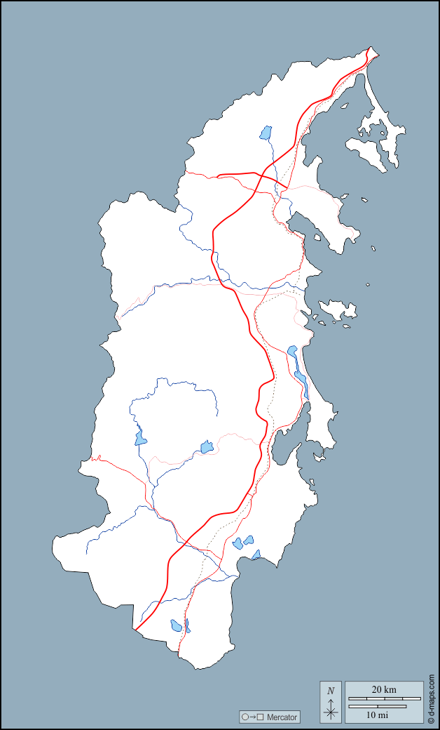 d-maps > アジア > ベトナム > カインホア省 > 輪郭, 川と湖, 道路